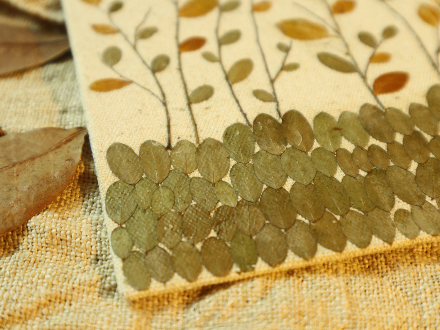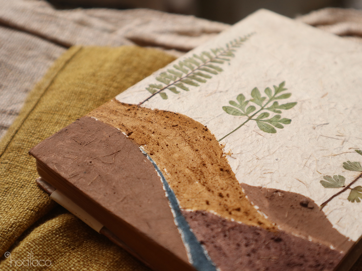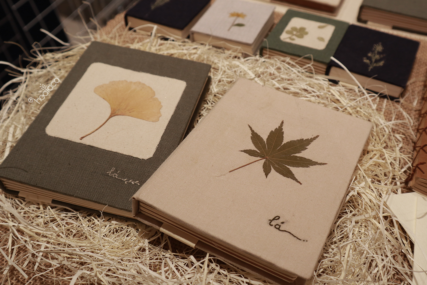 Kết hợp đất – chàm và lá trong những cuốn sổ khâu tay thủ công. Mỗi cuốn sổ là một cảm hứng riêng, một câu chuyện riêng.