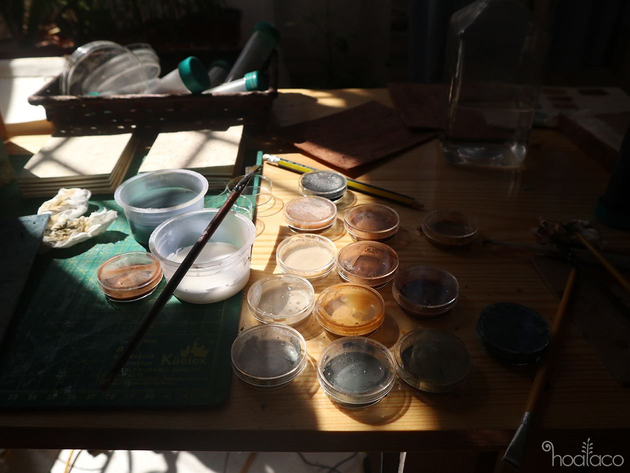 Về đất – chàm: Ứng dụng những mảng màu sắc nhiều biến thiên của đất ngoài tự nhiên trong việc tạo sáng tạo màu sắc trên những cuốn sổ, cùng với màu sắc xanh dương của cao chàm.